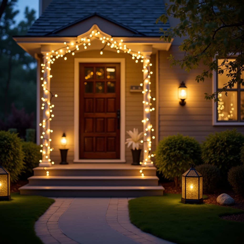 Place decorative lanterns on your steps or porch with flickering LED candles for a charming and safe holiday glow.